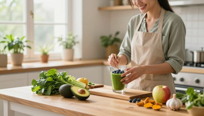 - รับประทานอาหารที่ดีต่อสุขภาพ: เน้นผัก ผลไม้ ธัญพืชไม่ขัดสี โปรตีนคุณภาพดี และไขมันดี เช่น น้ำมันมะกอก